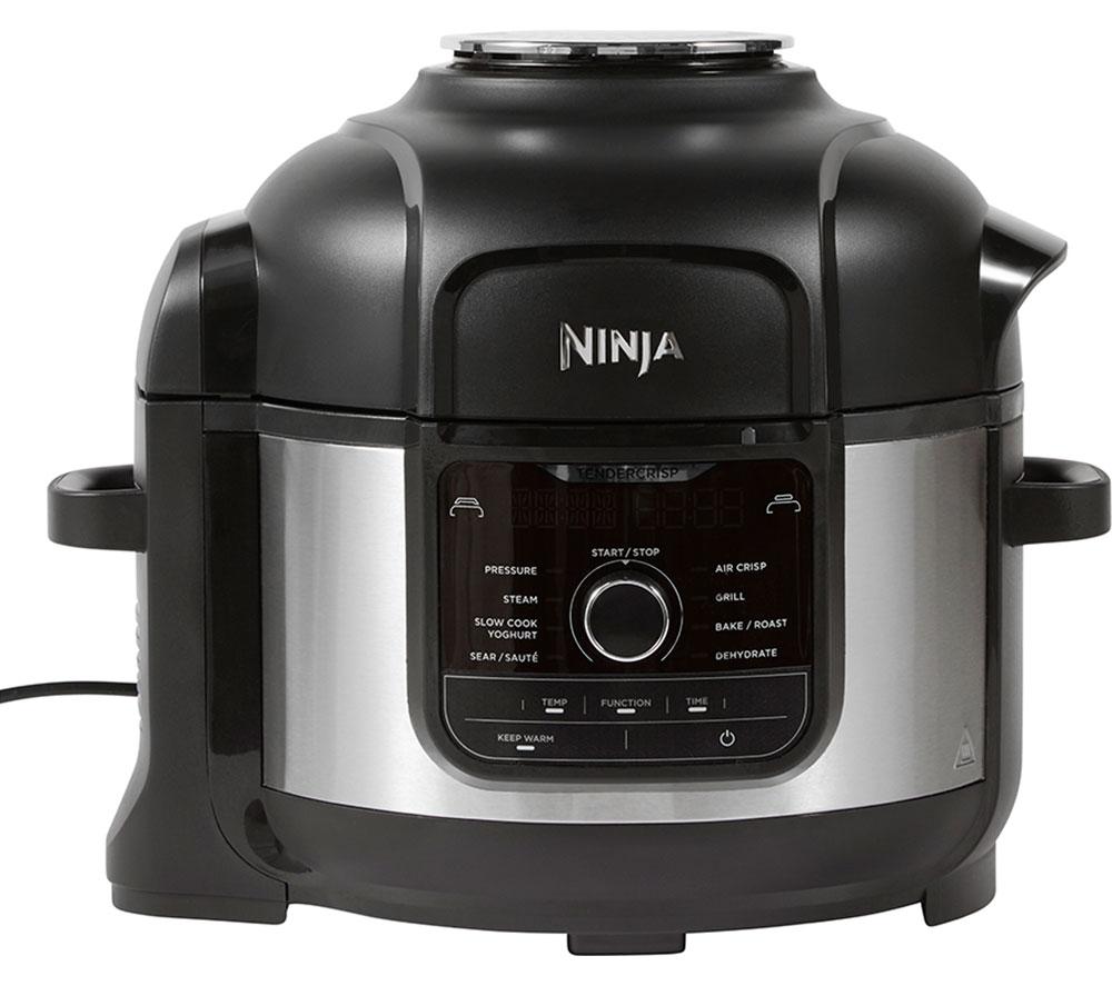 Make big meals in no time with this Ninja pressure cooker and air fryer. It works up to 70% faster than a standard cooker, so you can quickly serve up anything from steaks to a whole roast chicken. The big 6 litre capacity lets you prepare enough for up to 3 or 4 people in one go – perfect when you’re entertaining friends or family. And if you want to cook a main and sides at the same time, use the reversible rack to stack your food. The result? One-pot meals in less time.Good to know- With 9 cooking functions you’ve got the option to roast, grill, steam, sauté and more – so it’s easier than ever to get creative in your kitchen- With Ninja’s special TenderCrisp technology you can cook tender, juicy meat and then give it the ideal crisp finish- The air fryer function cooks with up to 75% less fat than traditional frying – so you can enjoy your favourite treats without the guilt- Not in a hurry? The slow cooker function will have your meal waiting for you when you get home – perfect for tender pulled pork or casseroles- With the bake function you can enjoy fresh, crispy bread any time, without needing to use your oven- When it’s time to clean up, the non-stick cooking pot and basket are both dishwasher-safe