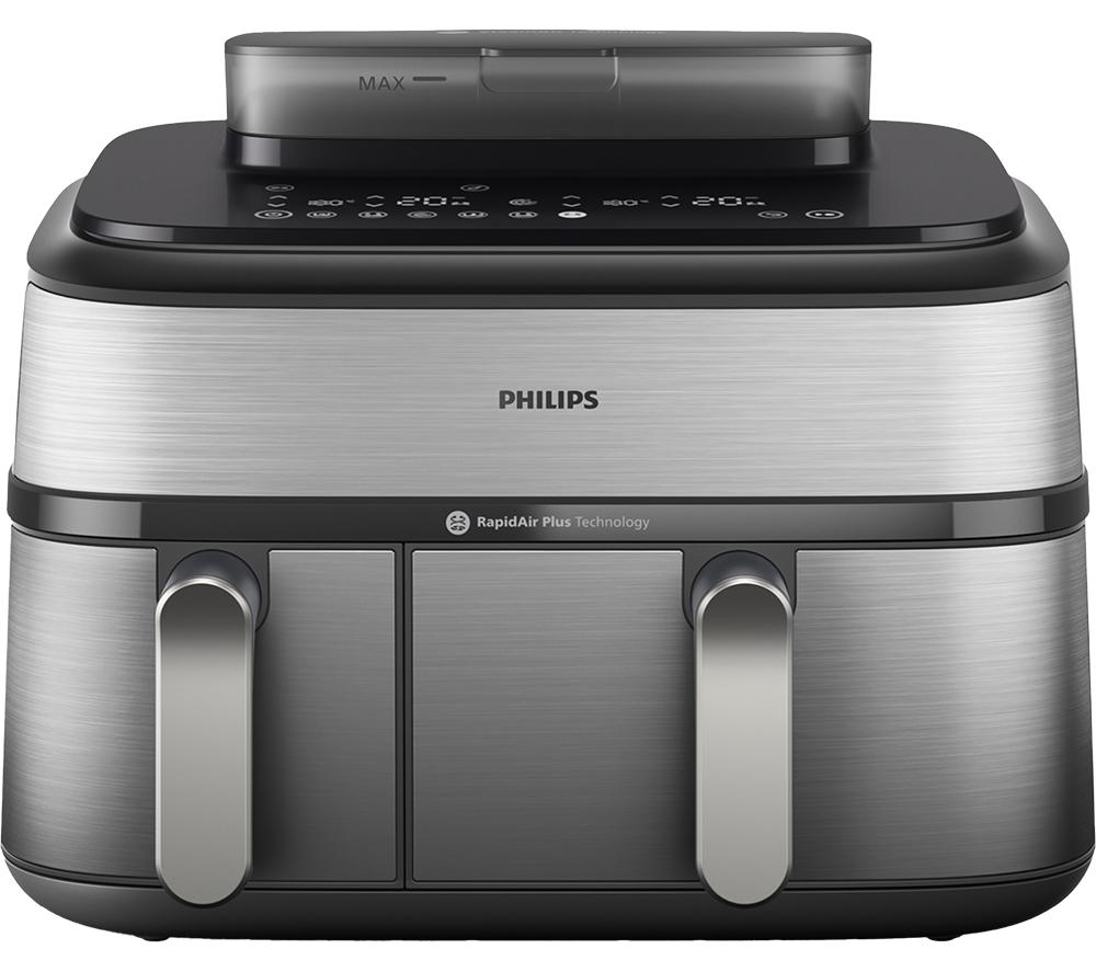 PHILIPS 5000 Series 9L NA555/09 Dual Basket Steam Air Fryer Silver, Silver/Grey